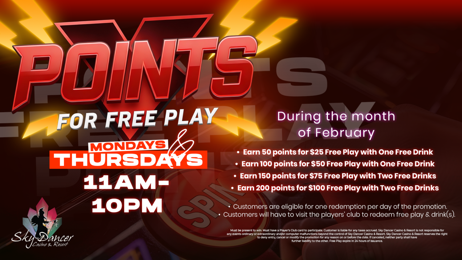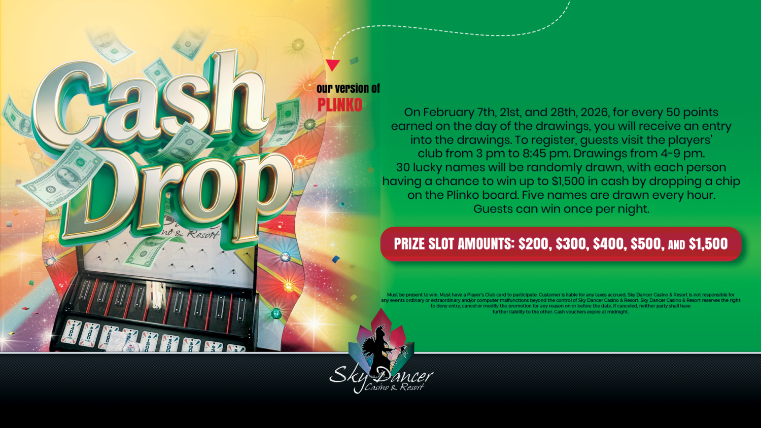 Be the first to hear. Sign up to stay in-the-know about package deals, events, news and more exciting updates from Sky Dancer Casino & Resort.